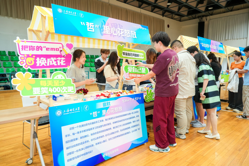 5·25全国大学生心理健康日之际,我校“智耕四季,五育护心”2025年度第二十届心理健康教育活动季游园会于5月23日下午在徐汇校区西部球类馆圆满举办。本次游园会由校心理咨询与发展中心、学生工作部(处)携手研究生工作部和心理、教育、美术、生科、环地、哲法、化材、对外汉语等八个学院共同打造,共设12个摊位,打卡“创造力”“感恩”“勇气”“团结合作”“爱与被爱的能力”等12种心理品质,吸引了近300位校内外师生参与体验。