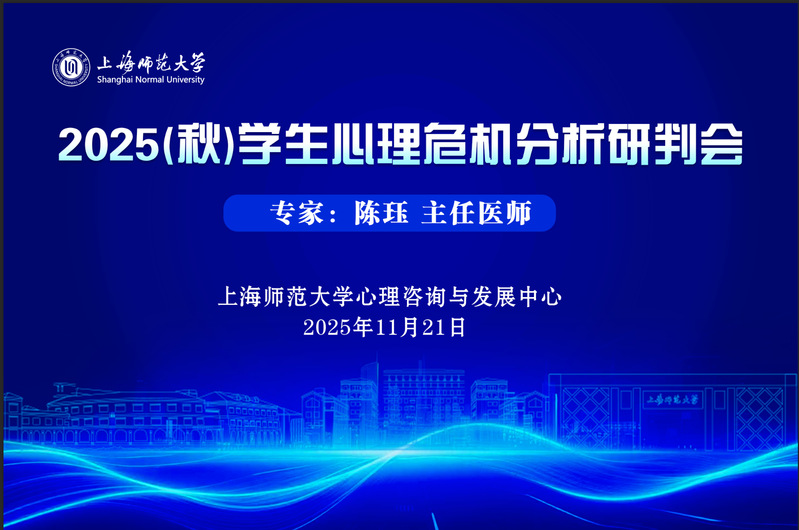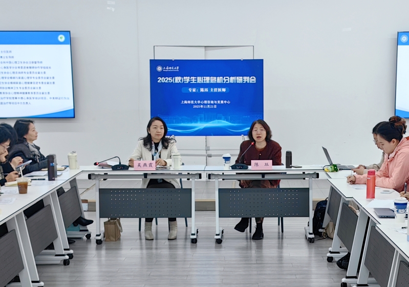 11月21日上午,上海师范大学2025年秋季学生心理危机分析研判会在徐汇校区举行。上海市精神卫生中心临床心理科主任陈珏受邀做专家指导,上海师大心理咨询与发展中心主任吴燕霞主持,各学院心理辅导员、带班辅导员、心理中心专职教师30余人参会。
