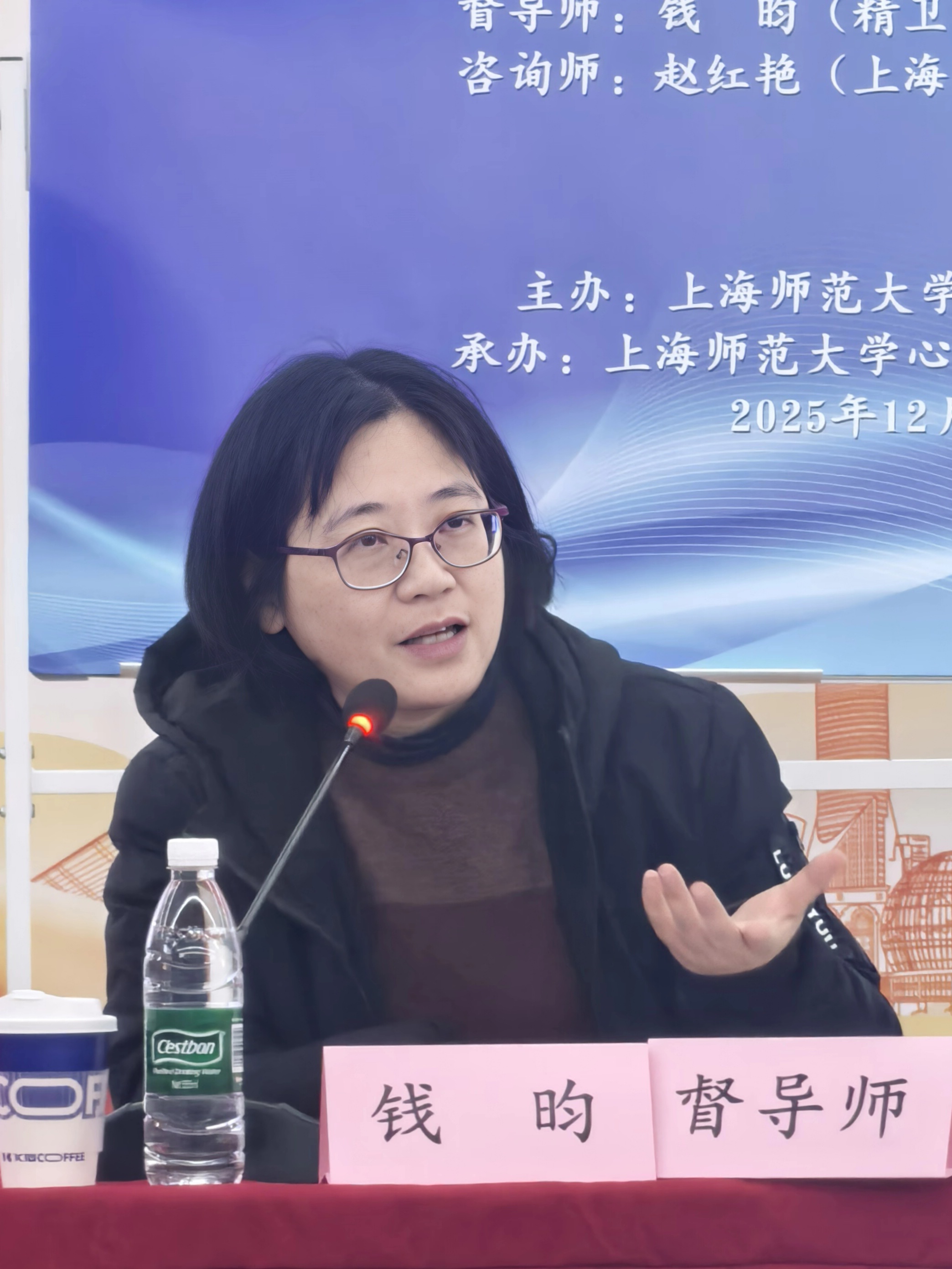 本次案例督导采用内外圈的形式进行,特邀上海精卫中心儿少科主任医师钱昀担任专家督导,上海师大心理中心兼职心理咨询师赵红艳提交了一例关于学业受挫引发危机风险的个案接受督导,心理中心主任吴燕霞主持。